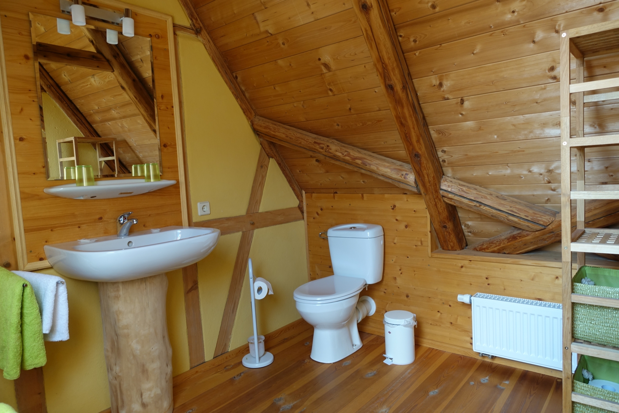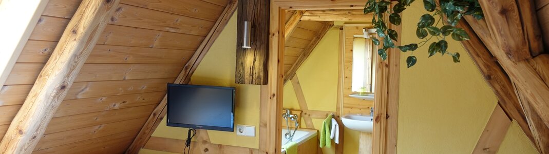 Unser Haus ist fast 500 Jahre alt und war ehemals ein kleiner 3-Seitenbauernhof. Gerade das Alter und seine charmanten Unebenheiten machen den Charme der Ferienwohnungen aus, wobei die Ferienwohnung "Zeittor" im Erdgeschoss mehr in Sandstein gehalten ist.