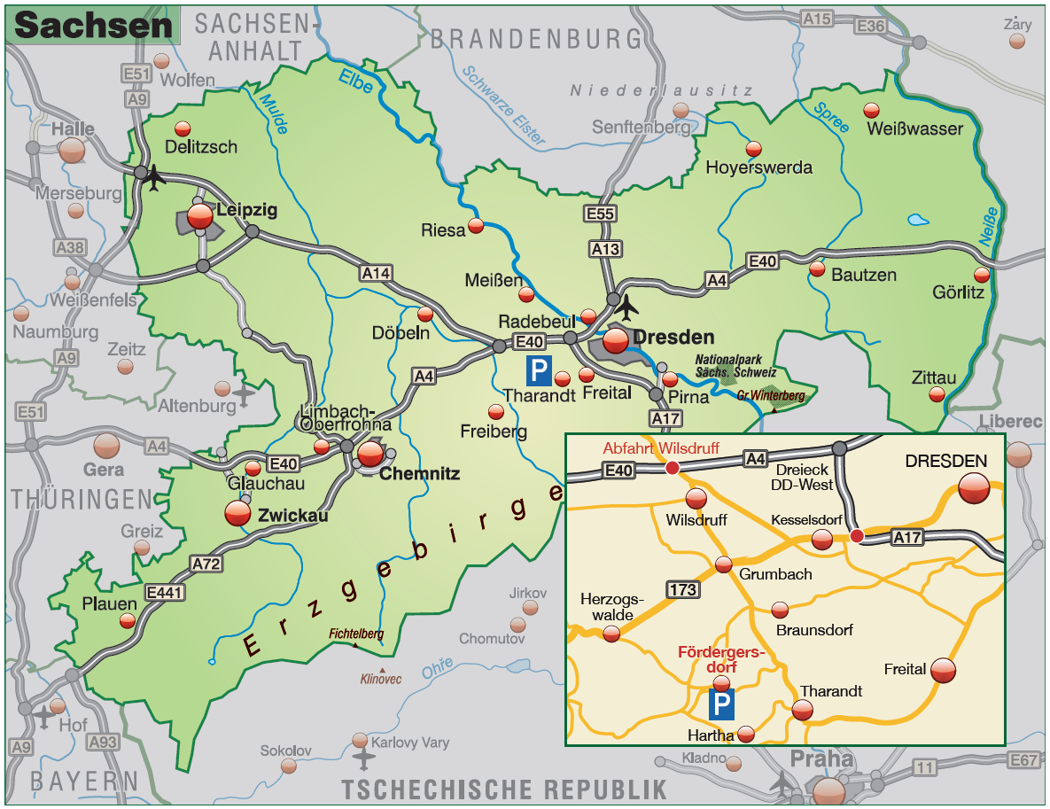 Die Ferienwohnung liegt im Ortskern von Fördergersdorf am Rande des Tharandter Waldes mit zentralen Ausflugsmöglichkeiten nach Dresden, Sächsische Schweiz, Freiberg, Meißen und Osterzgebirge.